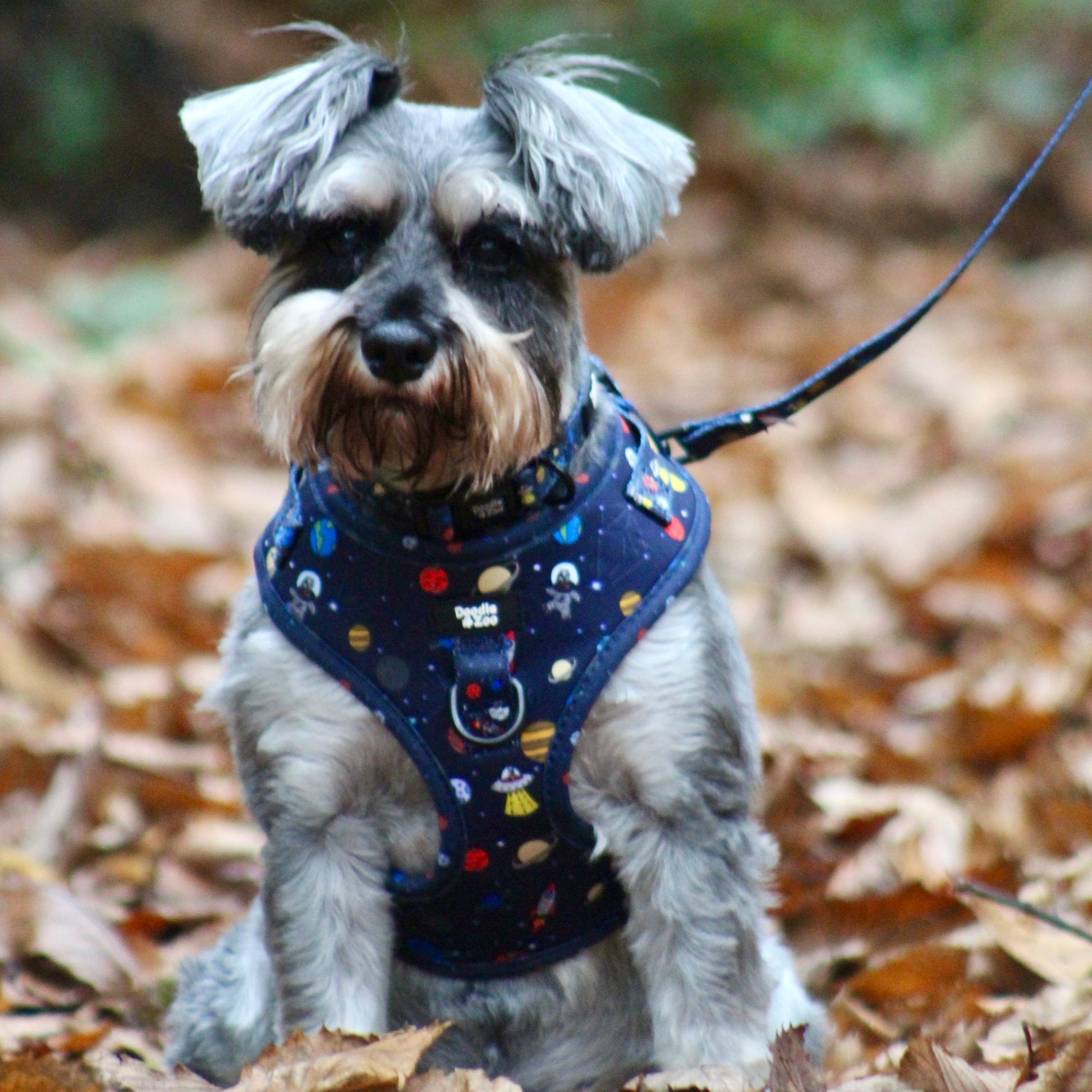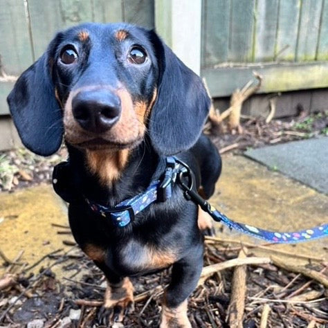 Bring a touch of space to your daily walks with our Out of This World design. This cosmic patten is designed for dogs who are always ready for an adventure. Featuring a deep midnight-blue base scattered with dog astronauts, rockets, and colourful planets, this playful yet stylish design is perfect for pups who love to stand out from the crowd.