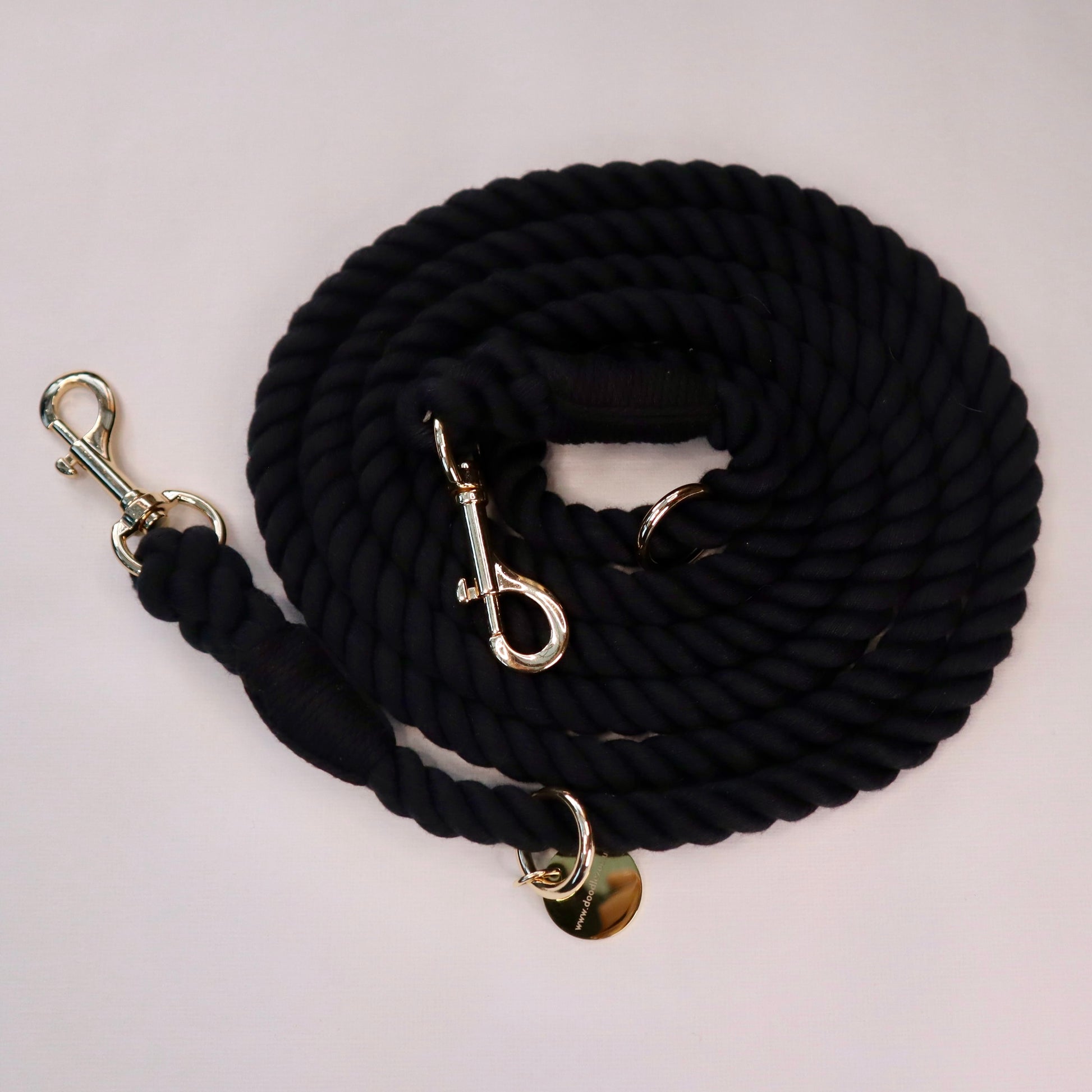 Crafted from soft yet durable rope and finished with luxury gold clips and hoops, this lead is designed to move with you. The adjustable hoops make it easy to wear your way - hands-free over the shoulder, around the waist, or classic handheld.